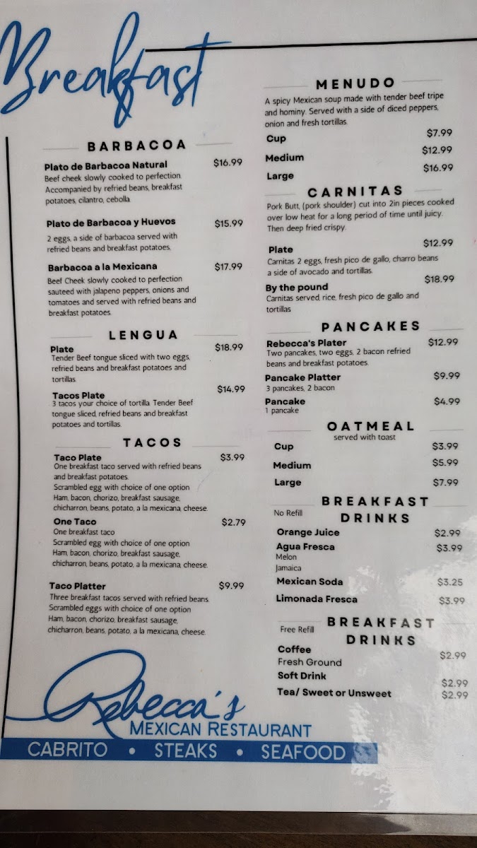 10 breakfast tacos (egg, potato, chorizo, bacon, nopales) choose 2 items. comes beans, potatoes and orange juice or coffee (4)